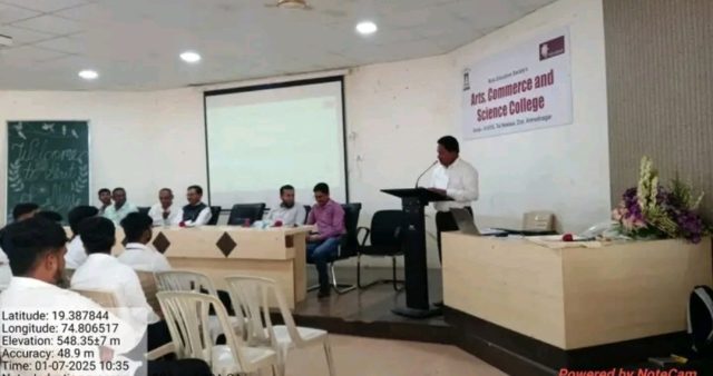 अहिल्या नगर, कारभारी गव्हाणे प्रतिनिधी –     मुळा एज्युकेशन सोसायटीचे, कला, वाणिज्य व विज्ञान महाविद्यालय, सोनई येथे मुळा एज्युकेशन सोसायटीचे उपाध्यक्ष सन्माननीय उदयन दादा गडाख यांच्या संकल्पनेतून महाविद्यालयात आज एआईसीटीई अंतर्गत बीबीए आणि बीबीए(सीए) विभागात नव्याने प्रवेशित विद्यार्थ्यांसाठी दीक्षारंभ कार्यक्रम आयोजित केला. प्राचार्य डॉ. शंकर लावरे सर यांच्या हस्ते उद्घाटन झाले. प्रा.डॉ. सय्यद लियाकत यांनी विद्यार्थ्यांचे स्वागत करून शुभेच्छा दिल्या. उपप्राचार्य डॉ. ज्ञानदेव झिने व प्रा.महेश बहीरट यांनी विद्यार्थ्यांना मार्गदर्शन केले. प्रा. डॉ. शंकर लावरे सरांनी महाविद्यालय मध्ये असणाऱ्या सोयी सुविधा तसेच भविष्यकाळातील संधी बद्दल माहिती दिली. कार्यक्रमाकरिता विभागातील सर्व शिक्षक उपस्थित होते. विविध मनोरंजक उपक्रमांनी कार्यक्रमाची सांगता झाली.