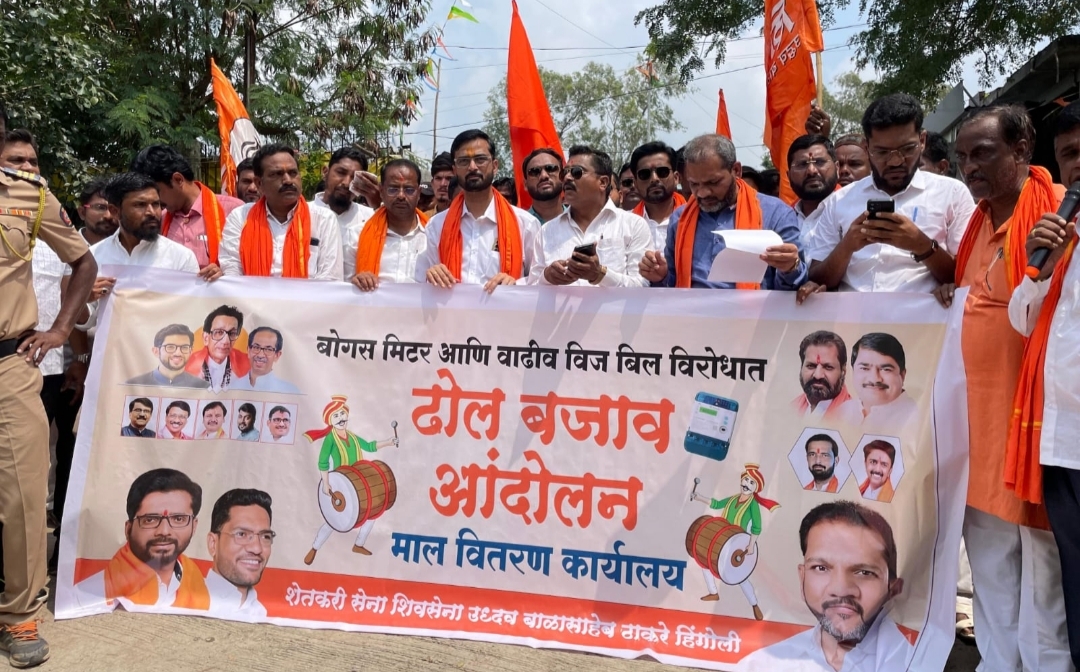 महावितरण कंपनी च्या गलथान व प्रशासनाच्या मनमानी कारभाराच्या विरोधात शिवसेना उद्धव बाळासाहेब ठाकरे पक्षाच्यावतीने आज हिंगोली जिल्हा महावितरण कार्यालयावर ढोल बजाव आंदोलन करण्यात आले…