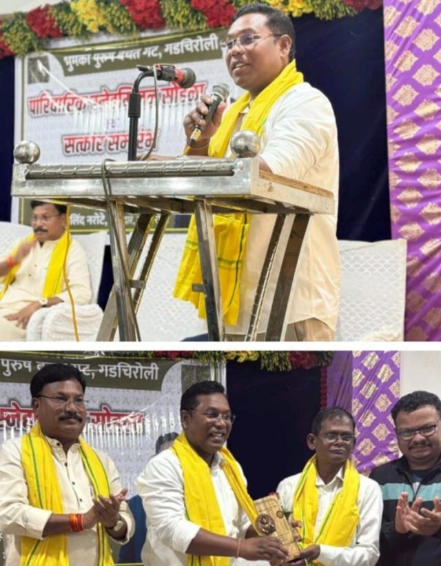या सोहळ्याचे प्रमुख आकर्षण म्हणजे आमदार मिलिंदजी नरोटे यांचा सत्कार करण्यात आला. या प्रसंगी माजी आमदार डॉ. नामदेवराव उसेंडी हे विशेष अतिथी म्हणून उपस्थित होते. दोन्ही मान्यवरांच्या उपस्थितीमुळे कार्यक्रमाला विशेष औचित्य प्राप्त झाले.